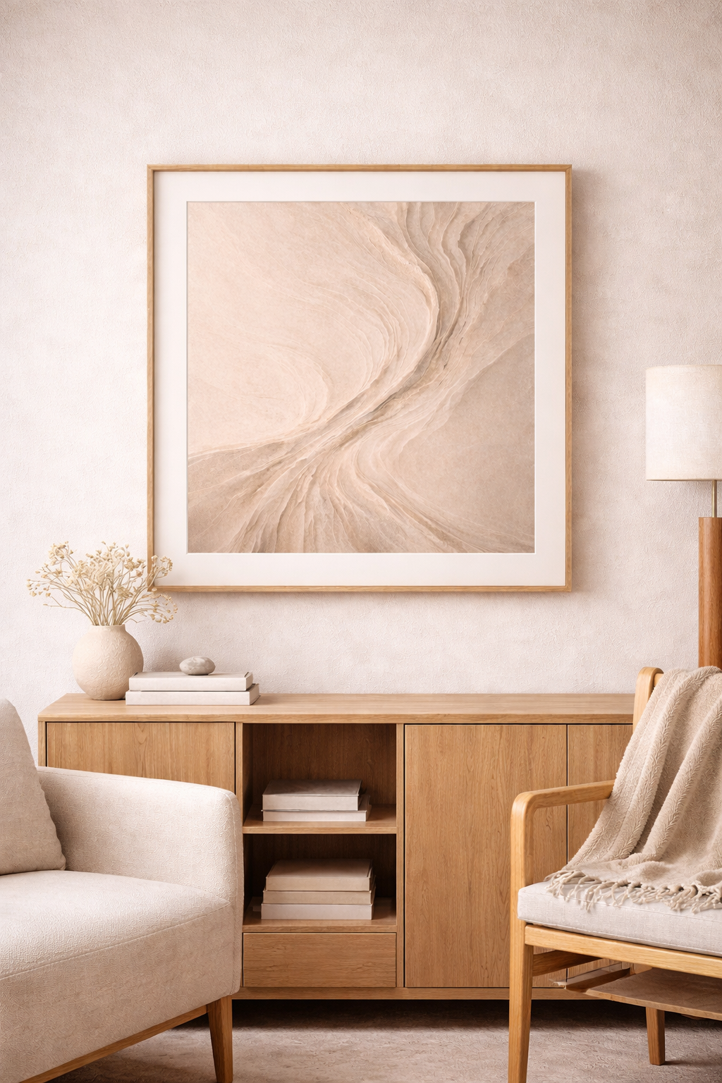 Layered textures shift and compress across the surface, revealing subtle depth and movement. The result is a quiet tension - balanced, organic, and grounded in natural form.